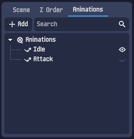 The eye icon indicates which animation is currently displayed in the Animation panel and edited in Pose mode.